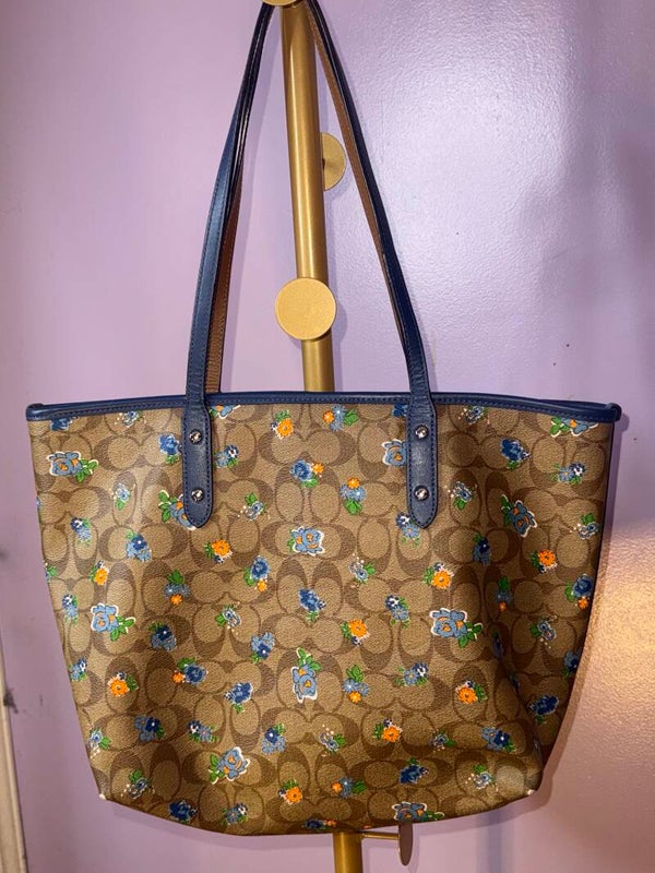 Great Condition!! Coach Mollie Tote Bag in Signature Canvas W/ Country Floral Print Brown/Orange/Blue